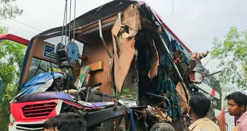 দিনাজপুরে আঞ্চলিক মহাসড়কে বালুবোঝাই ট্রাকের পেছনে ধাক্কা দিয়ে দুমড়েমুচড়ে যায় যাত্রীবাহী বাস। আজ রোববার সকালে[/caption]দুর্ঘটনাকবলিত বাসের যাত্রী ও পুলিশ সূত্রে জানা যায়, আজ সকালে পঞ্চগড় থেকে হেরিটেজ ট্যুর অ্যান্ড ট্রাভেলস নামের যাত্রীবাহী একটি বাস ঢাকার উদ্দেশে রওনা দেয়। পথে বাসটি বিরামপুরের চণ্ডীপুর এলাকায় দিনাজপুর-গোবিন্দগঞ্জ আঞ্চলিক মহাসড়কে পৌঁছালে সড়কের বাঁ পাশে দাঁড়িয়ে থাকা বালুবোঝাই একটি ট্রাকের পেছনে ধাক্কা দেয়। এতে বাসটির সামনের অংশ দুমড়েমুচড়ে যায় এবং ঘটনাস্থলেই বাসচালকের সহকারী রাজিউল ইসলাম ও যাত্রী মোশাররফ হোসেনের মৃত্যু হয়। দুর্ঘটনায় আহত ছয়জনকে স্থানীয় লোকজন উদ্ধার করে বিরামপুর উপজেলা স্বাস্থ্য কমপ্লেক্সে নিয়ে যান। পরে সেখানে প্রাথমিক চিকিৎসার পর তাঁদের উন্নত চিকিৎসার জন্য রংপুর মেডিকেল কলেজ হাসপাতালে পাঠানো হয়।